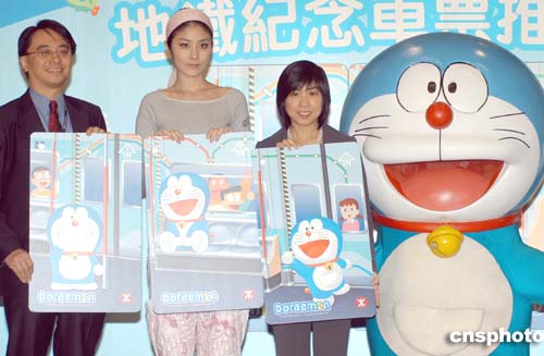 歌星陳慧琳11月17日在香港出席地鐵公司《多啦A夢(mèng)地鐵紀(jì)念車票推廣儀式》,陳慧琳與漫畫明星“多啦A夢(mèng)”及地鐵公司高層共同展示快將推出的一套紀(jì)念車票。作者:鄧慶樂