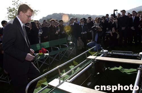 今天的安葬儀式有三百余人出席,中國(guó)駐舊金山副總領(lǐng)事邱學(xué)軍專程前往參加并宣讀了彭克玉總領(lǐng)事的唁電,向張純?nèi)绲挠H人表示慰問(wèn)。彭克玉說(shuō),雖未與張純?nèi)缰\面,但早已得知她的作品和事跡。她以正義、勇敢、執(zhí)著、求實(shí)的精神揭露了侵華日軍在中國(guó)的暴行,還歷史以真實(shí),讓世界了解了南京大屠殺的真相。彭克玉還贊揚(yáng)張純?nèi)鐬槿A裔的權(quán)益、為增進(jìn)美國(guó)人民對(duì)華裔的了解作出了貢獻(xiàn),是人們永遠(yuǎn)懷念和尊敬的偉大女性。張純?nèi)鐑簳r(shí)的伙伴、大學(xué)的好友等也分別回憶了往日與張純?nèi)绲某ο嗵帯?object align="left" classid="clsid:D27CDB6E-AE6D-11cf-96B8-444553540000" codebase="http:///pub/shockwave/cabs/flash/swflash.cab#version=5,0,0,0" height="240" width="320">