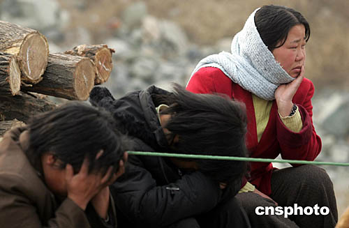 二零零四年十一月二十二日,“11.20”河北沙河礦難救援工作仍在進(jìn)行。截止當(dāng)日十九時(shí)三十分,河北沙河礦難遇難礦工人數(shù)已達(dá)五十七人,另有三人人下落不明。圖為仍沒有獲救的遇難礦工家屬在礦井附近焦急等待。中新社記者:武仲林
