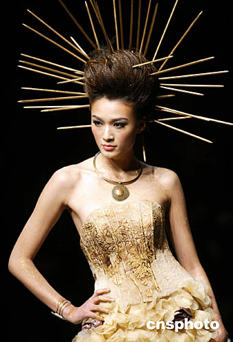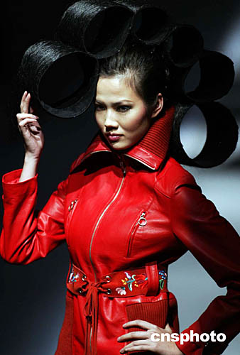 十一月二十三日,在中國(guó)國(guó)際時(shí)裝周會(huì)場(chǎng)北京飯店內(nèi),一場(chǎng)時(shí)裝發(fā)布會(huì)通過一組構(gòu)思奇特的模特造型將服裝設(shè)計(jì)師的時(shí)裝設(shè)計(jì)作品演繹得淋漓盡致,也更添模特嬌媚。中新社記者:盛佳鵬