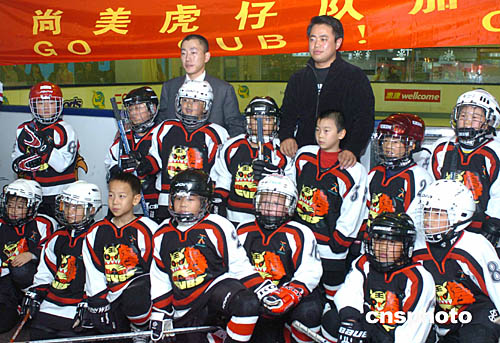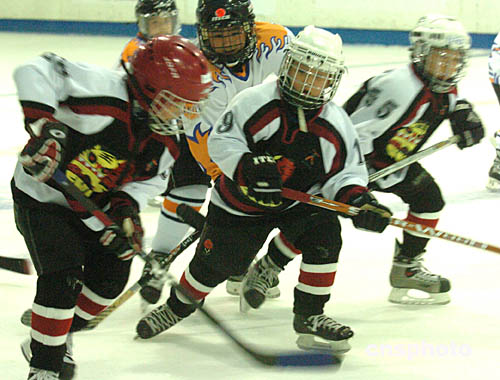 2004年亞太區(qū)少兒冰球賽25日在香港西九龍中心舉行﹐來自北京﹑新加坡﹑美國﹑加拿大﹑英國﹑澳洲等14支隊150多名選手參加本次比賽﹐中新社記者:趙振清