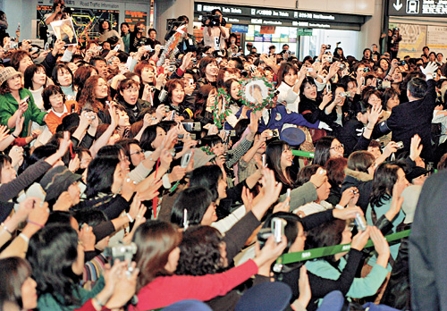 很多日本婦女在裴勇俊抵日前多個(gè)小時(shí)就到機(jī)場(chǎng)霸占最佳位置,準(zhǔn)備一睹他的風(fēng)采。裴勇俊本人帶了約一百名警衛(wèi)隨行,但日本當(dāng)局再增派一百名保安人員協(xié)助,以免出亂子。
