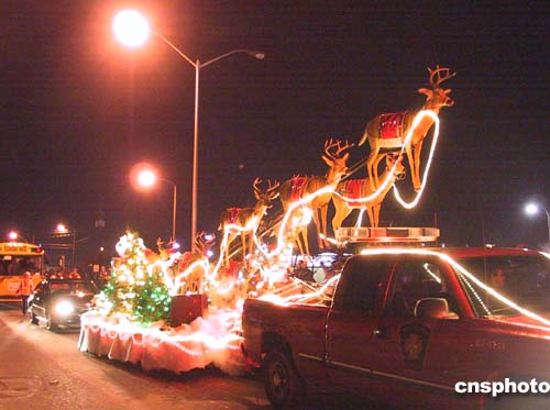 當(dāng)?shù)貢r(shí)間十一月二十七日晚,加拿大一年一度的“圣誕燈光大游行”在首都渥太華市舉行。數(shù)萬(wàn)民眾冒著凜烈的寒風(fēng)沿街觀看,近百輛彩燈裝飾的彩車行進(jìn)在“圣誕快樂!”的歡呼聲中。作者:蒲力