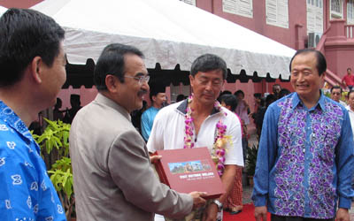 由于今年是中馬建交30周年的“中馬友好年”,中馬雙方對(duì)于“鳳凰號(hào)”下西洋這一大型電視行動(dòng)格外珍視,使這場慶祝鄭和后人在600年后再次駕船到來的儀式別具特色。