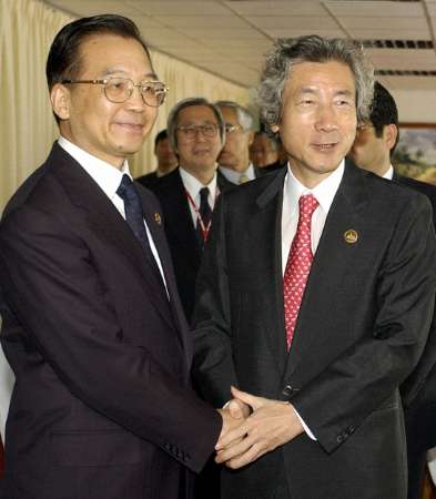 溫家寶說,中日是重要的鄰邦。中日邦交正;陙恚瑑蓢P(guān)系取得了很大的發(fā)展。發(fā)展睦鄰友好關(guān)系對兩國有利,對亞洲乃至世界都有利。