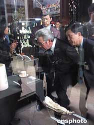 正在廣東訪問的吉爾吉斯斯坦總理尼古拉·塔納耶夫十二月一日來到廣東民間工藝博物館(陳家祠)參觀。圖為塔納耶夫總理仔細(xì)欣賞陳家祠內(nèi)精美的象牙雕刻工藝品。作者:郭軍