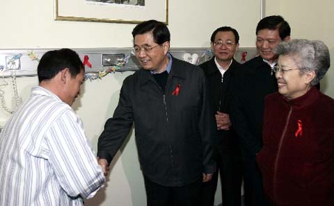 埃菲社報道說,中國國家主席胡錦濤在世界艾滋病日前夕探望了數(shù)名艾滋病患者。此舉反映了政府與艾滋病作斗爭的決心。電視轉(zhuǎn)播的胡錦濤這一舉動正式啟動了政府開展的大型活動。該活動的目的是紀(jì)念艾滋病日,同時發(fā)出至今仍無法抑制疫情傳播的警報。