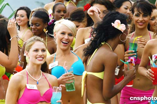 在12月4日舉行第54屆世界小姐總決賽前夕,為拍攝宣傳短片,各國美女身著泳裝在三亞開沙灘派對,盡情感受三亞熱情風(fēng)情。作者:喜來登