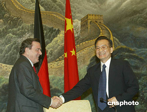 溫家寶是在結(jié)束與正在中國(guó)進(jìn)行工作訪問(wèn)的德國(guó)總理施羅德的會(huì)談后對(duì)中外記者作上述表示的。