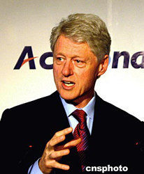 大病之后的美國前總統(tǒng)克林頓前往助陣并發(fā)表演講