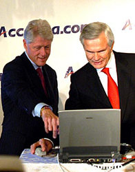 大病之后的美國前總統(tǒng)克林頓前往助陣,并和ACCOONA公司董事會主席?斯·法伊弗(右)一起操作搜索引擎。