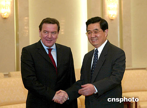 胡錦濤是今天下午在人民大會(huì)堂會(huì)見德國總理施羅德時(shí)作上述表示的。