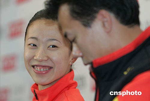 | 二零零四年十二月十六日到十九日,世界花樣滑冰大獎(jiǎng)賽總決賽將在北京首都體育館舉行,來自中國、美國、加拿大等八個(gè)國家的三十六名優(yōu)秀選手將角逐雙人滑、冰舞、男單、女單等四個(gè)項(xiàng)目的金牌。中國的三對(duì)雙人滑選手申雪/趙宏博、張丹/張昊、龐清/佟健和一名男子單人滑選手李成江進(jìn)入總決賽。由于米尼娜/馬列寧的缺陣,中國選手申雪/趙宏博目前一支獨(dú)秀,如無意外,雙人滑冠軍應(yīng)是他們的囊中之物。圖為申雪/趙宏博十二月七日在新聞發(fā)布會(huì)上。中新社記者:武仲林