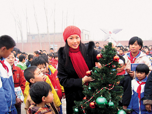 中新網(wǎng)12月8日電 據(jù)香港大公報報道,應屆港姐冠軍徐子珊,日前應中國香港(地區(qū))商會之邀,到北京出席慈善晚會,并代表商會探訪北京偏遠山區(qū)的小學,與當?shù)匦∨笥烟崆坝フQ,除了與小朋友一起布置圣誕樹,又向他們派送禮物。