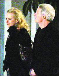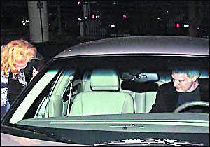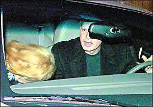 當晚,身著藍色毛衣和黑色休閑外套的史蒂夫用他的林肯轎車載著迷人的妮可前往他的錄音棚,車子一到達,妮可就迫不及待地鉆進去。妮可系著一條花絲巾,穿著一件黑色西服上衣,下車前,妮可不忘左張右望,看了又看。發(fā)現有人拍照時,機警地低下頭并用手遮臉,但神情并不慌張,臉上倒掛著甜蜜的笑。一路上兩人談談笑笑,廝守3個小時后,史蒂夫才送妮可回家,兩人牽手下車,朝妮可家中走去。