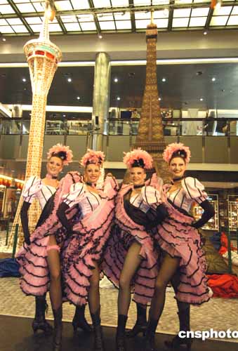 澳門旅游塔為慶!胺▏幕辍奔鞍拈T回歸五周年,九日,特別呈獻(xiàn)“法國濠情圣誕Party”,上演一纟列以法國文化周主題活動(dòng),一群法國女郎獻(xiàn)舞為活動(dòng)助慶。作者:梁永強(qiáng)