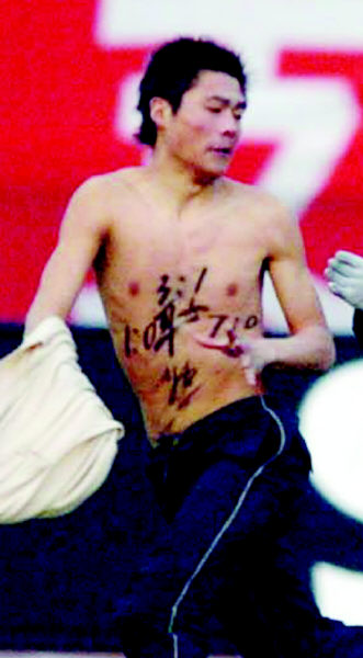 昨天下午,在首屆中超杯決賽中,擁有主場之利的魯能泰山隊(duì)?wèi){借舒暢和王超的進(jìn)球,2:0擊敗聯(lián)賽冠軍深圳健力寶隊(duì),如愿將中超杯冠軍獎杯留在了濟(jì)南。在王超打入第二球后,賽場上出現(xiàn)了戲劇性一幕,一名赤膊的年輕球迷突然沖進(jìn)賽場,上演了國內(nèi)綠茵場的首次“裸奔”鬧劇。