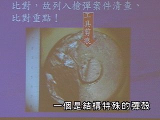 臺灣“中國時報”今日頭版的位置報道說,項目人員是在11月底,根據(jù)刑事局提供的分析資料、借訊在押的擁槍嫌犯,并循線查出臺南的一個槍械制造集團所制造販售的子彈,和項目人員在“319槍擊案”現(xiàn)場尋獲的2顆彈殼完全相同,因而前往緝捕,一舉捕獲5名嫌犯,主嫌坦承,“319槍擊案”現(xiàn)場發(fā)現(xiàn)的彈殼是他們所制造販售的,隨后并帶警方起出制造工具。