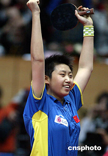十六歲的小將郭躍今天表現(xiàn)神勇,在女單比賽中接連戰(zhàn)勝狀態(tài)回勇的老將王楠和上屆冠軍牛劍鋒,獲得其運動生涯中第一個國際大賽冠軍,也成為該賽事歷史上最年輕的冠軍。