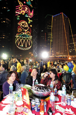 中新網(wǎng)12月13日電 據(jù)香港大公報(bào)報(bào)道,第二屆“萬(wàn)人盆菜宴”昨日在添馬艦舉行,繼去年舊啟德機(jī)場(chǎng)筵開(kāi)六百六十席,打破全球最多人同一地點(diǎn)吃盆菜的紀(jì)錄后,今年更突破八百席大關(guān),舉行了一場(chǎng)名副其實(shí)的萬(wàn)人盛宴。活動(dòng)籌委會(huì)主席黃家和希望能將這個(gè)活動(dòng)發(fā)揚(yáng)光大,打造成香港每年一度的盛事。