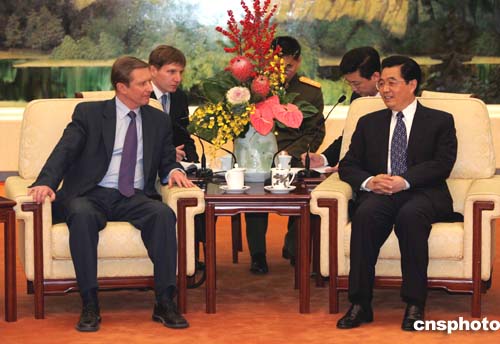 胡錦濤高度評(píng)價(jià)中俄兩國(guó)、兩軍關(guān)系。他說(shuō),中俄建立戰(zhàn)略協(xié)作伙伴關(guān)系以來(lái),兩國(guó)關(guān)系進(jìn)入了全面發(fā)展的新階段。雙方的戰(zhàn)略協(xié)作不斷加強(qiáng),各領(lǐng)域合作務(wù)實(shí)深入、富有成效,達(dá)到了前所未有的高水平。兩軍關(guān)系也呈現(xiàn)良好的發(fā)展勢(shì)頭。