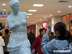 2004年12月13日,84件法國盧浮宮雕塑藝術(shù)品的復(fù)制品在北京免費展示。展覽在家樂福的中關(guān)村廣場舉辦,為期8天,為北京的普通消費者增加一個近距離了解法國國寶的機會。作者:張碩
