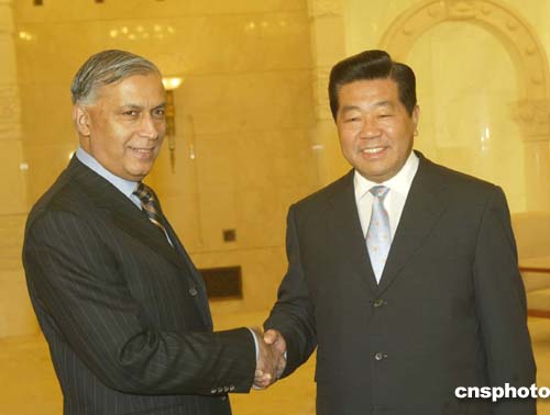 中新社北京十二月十六日電 全國政協(xié)主席賈慶林今天在北京人民大會堂會見了來訪的巴基斯坦總理阿齊茲。