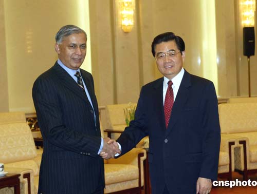 中新社北京十二月十六日電(記者齊彬)中國國家主席胡錦濤今天下午在會見巴基斯坦總理阿齊茲時表示,中方愿與巴方進(jìn)一步強(qiáng)化反恐合作,共同打擊地區(qū)“三股勢力”。