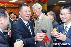 何厚鏵向與會人士一一敬酒,祝賀澳門回歸祖國五周年。 作者:宋吉河