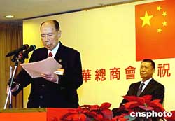 全國政協(xié)副主席、澳門中華總商會會長馬萬祺,16日在澳門中華總商會慶祝澳門特別行政區(qū)成立五周年酒會上致辭,澳門特別行政區(qū)行政長官何厚鏵參加酒會。作者:宋吉河