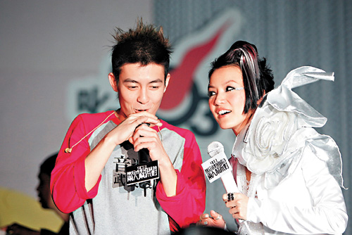 有“緋聞王”之稱的Edison,看來不太介懷緋聞事,邀一班緋聞女友上臺撐場,毫不避忌;更與最新緋聞女友Stephy在臺上不時耳語,看來甚親密。事后Edison表示,所謂耳語,是因為Stephy受驚,于是他便安慰對方。