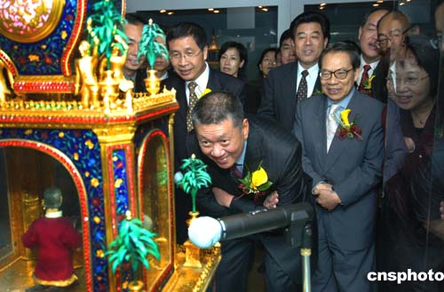 行政長(zhǎng)官何厚鏵看得特別仔細(xì),不時(shí)問(wèn)工作人員這是什么國(guó)家制造的,是哪一年流入中國(guó)。在一座英國(guó)十八世紀(jì)出產(chǎn)的銅鍍金升降塔鐘前,何特首問(wèn)身旁的故宮博物院的李副館長(zhǎng),這升降塔如果零件壞了怎么辦?李副館長(zhǎng)說(shuō),這都是手工制品很精細(xì),現(xiàn)在壞了英國(guó)也找不到做零件的師傅,所以很少開(kāi)動(dòng)。何特首表示這些珍品要好好地保護(hù)。
