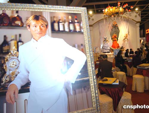 香港第37屆圣誕婚紗及結(jié)婚用品展17日在會展中心開幕﹐是次展覽云集了200多個參展商﹐當(dāng)中包括婚紗攝影﹑婚紗晚裝等用品﹐“劉德華”到場為圣誕婚紗展作宣傳。作者:趙振清