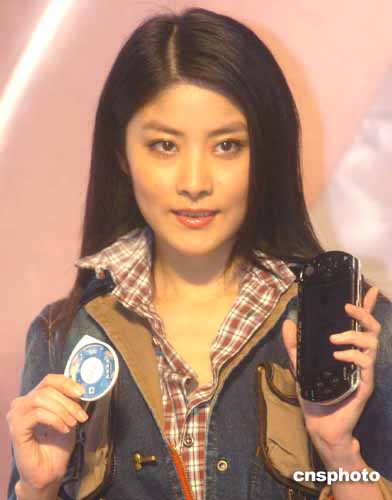2004年亞洲游戲展17日在香港會展中心開幕﹐本屆游戲展形像代言人陳慧琳在開幕式上展示PSP游戲機。作者:趙振清
