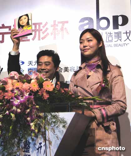 曾經(jīng)因自己是人造美女而被取消“2004環(huán)球洲際小姐”參賽資格的楊媛小姐,十八日晚成為威寧整形杯首屆“人造美女”大賽上的特邀佳賓。作者:王麗南