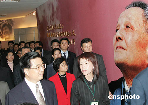 胡錦濤主席在澳門博物館參觀時,注目一幅鄧小平的巨大畫像。該博物館內正舉辦“世紀偉人鄧小平”圖片展