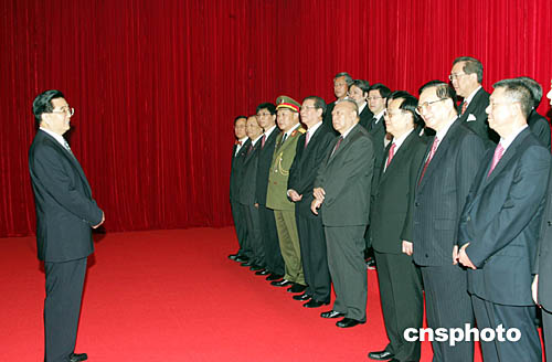 十二月二十日上午,胡錦濤在澳門文化中心會見香港特區(qū)政府官員,并在合影后發(fā)表講話。作者:宗金柱