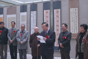 首都師范大學(xué)中國(guó)書法文化研究所名譽(yù)所長(zhǎng)、著名書法家歐陽中石教授出席了開幕式。北京市教委主任耿學(xué)超、北京大學(xué)書法研究所所長(zhǎng)金開誠(chéng)、首都師范大學(xué)副校長(zhǎng)王萬良等在開幕式上致辭。來自北京師范大學(xué)、中央美術(shù)學(xué)院、中國(guó)人民大學(xué)、四川大學(xué)、南京師范大學(xué),南京藝術(shù)學(xué)院等十六所高校的書法專業(yè)學(xué)生和書法愛好者也出席了開幕式。
