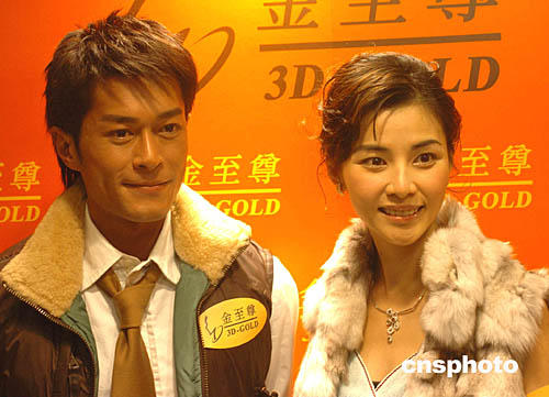 香港影視紅星古天樂(lè)﹑蒙嘉慧23日在香港出席金至尊銅鑼灣又一新店的開業(yè)儀式