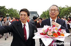 十二月二十三日,由著名華裔數(shù)學(xué)大師、菲爾茨獎獲得者丘成桐率領(lǐng)的華裔數(shù)學(xué)家代表團一行先后訪問廣州大學(xué)城和肇慶學(xué)院。圖為丘成桐教授在肇慶學(xué)院受到師生熱烈歡迎。作者:陳文