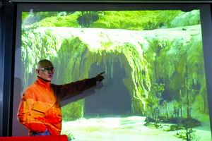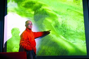 發(fā)布會上,李進先播放了他于11月2日在九寨溝國家森林公園采風時拍攝的錄像帶。畫面顯示,神仙池鈣化層上搭建了人工景觀,神仙池鈣化堤上留有一串串清晰的腳印。李進指著投影大屏幕肯定地說,這都是《神雕》劇組干的好事。隨后,李進又播放了他與神仙池管理辦公室主任的談話錄音。錄音中,“辦公室主任”稱《神雕》劇組在10月10日,不顧管理局的阻止私自搭景,并進入鈣化池工作,“我們早就跟劇組說不能這么干了,可他們還是不聽。最后在當?shù)夭孛竦膹娏铱棺h下,張紀中他們出來了,但沒有進行其他處理”。