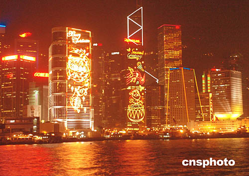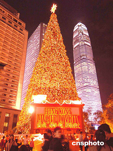 位于中環(huán)皇后像廣場的巨大圣誕樹與國際金融中心二期大廈遙相呼應(yīng)﹐看似媲美。