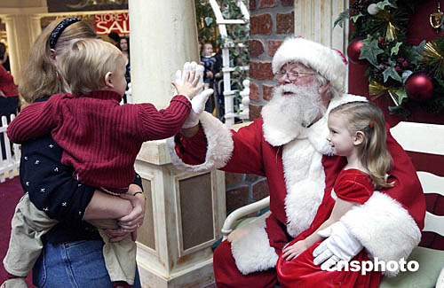 當?shù)貢r間十二月二十四日圣誕節(jié)前夕,硅谷最重要的城市圣荷西的圣誕老人在購物中心關門前的最后一分鐘還在向孩子們祝賀圣誕。作者:陳鋼