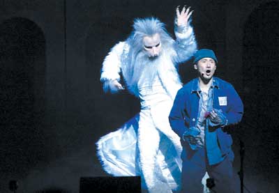 陳:它有那么多歌,跟音樂有很大的關(guān)系,對白也不是太多,都是用歌來交代情節(jié),它也不是音樂會,因?yàn)樗怯袆∏榈模矣X得它就是音樂劇。我們不要全學(xué)國外,因?yàn)槲覀兿M醒潘坠操p的音樂劇,讓一般觀眾不容易理解的不是我們心目中的理想。如果有人覺得這個不是音樂劇,他們可以自己做一個自己理想中的音樂劇,我們也會去看看有什么值得我們學(xué)習(xí)的。我們這個只是一個開始,我希望以后有更多不同類型的音樂劇來演。像我們這樣的,1997年時還是第一次做,之所以說創(chuàng)意音樂劇,就是沒有一個先例,自己比較寬松,想做什么就做什么,最重要的是觀眾覺得我們有誠意。