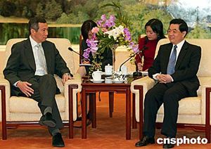 胡錦濤說,中新建交以來,雙邊關(guān)系發(fā)展迅速。兩國高層領(lǐng)導(dǎo)人互訪頻繁,相互了解和信任不斷加深。雙方經(jīng)貿(mào)合作成果顯著,其他領(lǐng)域的交流與合作卓有成效。我們贊賞新加坡堅(jiān)持一個(gè)中國政策,積極維護(hù)地區(qū)的和平與穩(wěn)定。