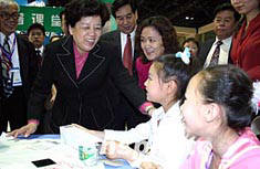 二零零四年全國科技活動周暨北京科技周于五月十五日在北京展覽館隆重舉行,國務(wù)委員陳至立出席了開幕式,并與前來參觀的小學(xué)生親切交談。本屆科技周以“科技以人為本全面建設(shè)小康”為主題,旨在提高公眾科學(xué)素養(yǎng)、普及科學(xué)知識。作者:徐曦弋