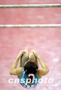 2004年5月15日,2004全國體操錦標賽暨奧運會預選賽的女子資格賽在江蘇省蘇州市體育中心體育館舉行,來自全國19個省市的代表隊參加了此次比賽。圖為女子高低杠比賽。中新社記者:盛佳鵬