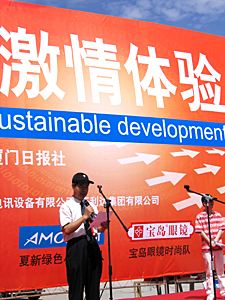 在第三十六屆世界電信日即將來臨之際,中國(guó)電信寬帶用戶突破一千萬,成為中國(guó)寬帶業(yè)務(wù)眾多服務(wù)提供商中首個(gè)突破千萬用戶的運(yùn)營(yíng)商。圖為廈門電信公司總經(jīng)理陳揚(yáng)忠宣布啟動(dòng)“激情體驗(yàn)”系列慶;顒(dòng)。作者:楊伏山