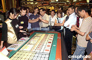 首間來自美國拉斯韋加斯大型娛樂場酒店“金沙娛樂場”十八日在澳門開幕,等候多時的澳門市民及游客終于進(jìn)入娛樂場內(nèi),但多為觀看者,真正下注者并不多見。中新社記者:李剛