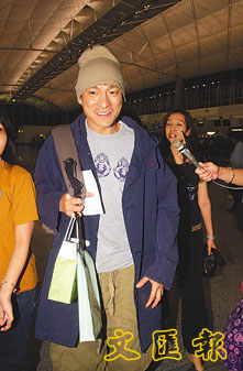當(dāng)晚,劉德華一身便服,頭戴帽子出現(xiàn)機(jī)場(chǎng),早已守候的半百fans即一涌而上,瘋狂大叫又要求與華仔合照及簽名,而華仔也心情甚佳,全部要求都答應(yīng)。